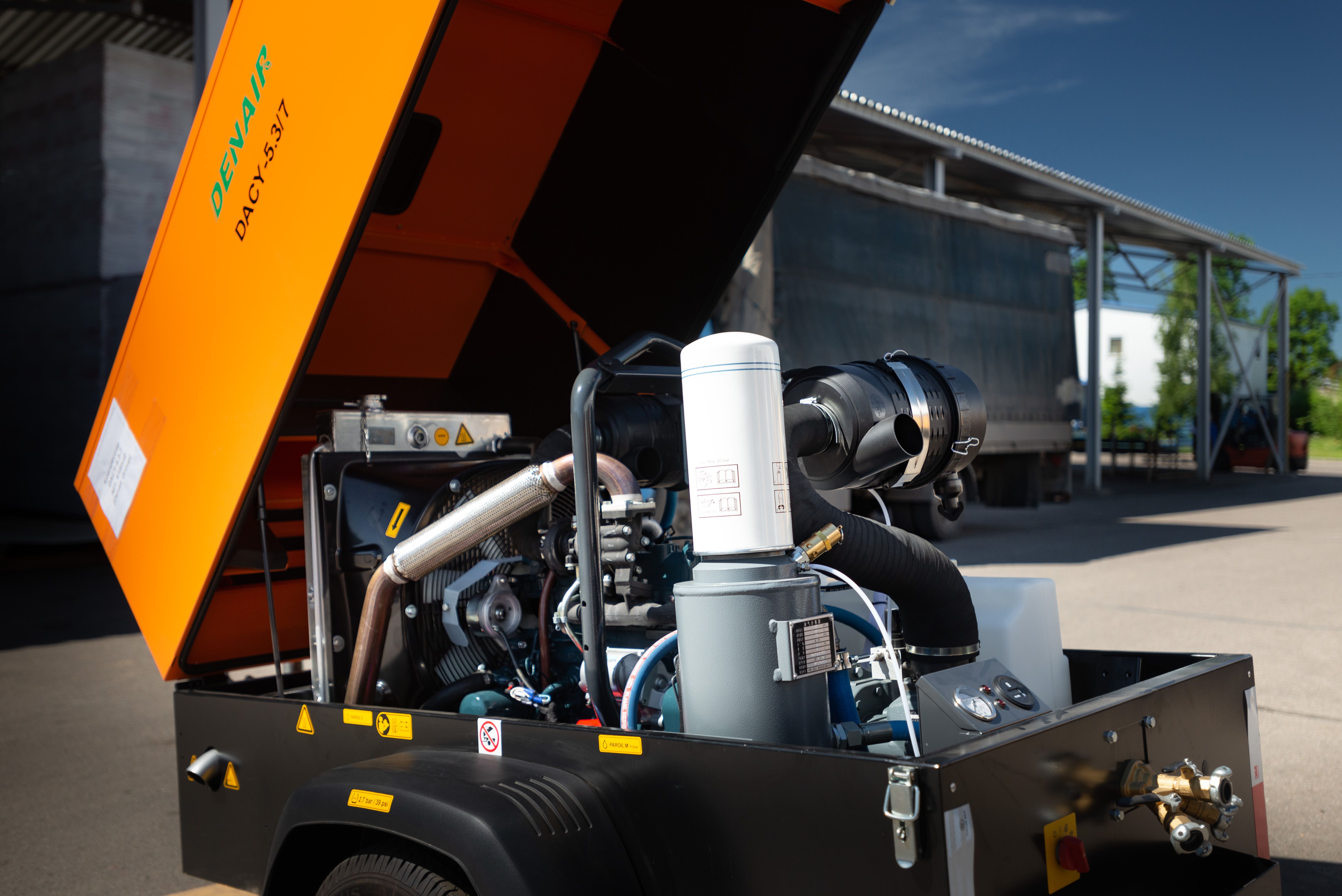 Компрессор (с пусковым предподогревателем) общей производительностью 12 м3/мин. Сопоставим с мощными шведскими компрессорами типа XAS186. Рабочее давление достигает 7 бар. Объём масла – 45 литров. Габариты компрессора: 3270 * 1910 * 1950 мм. Вес оборудования: 2 тонны.